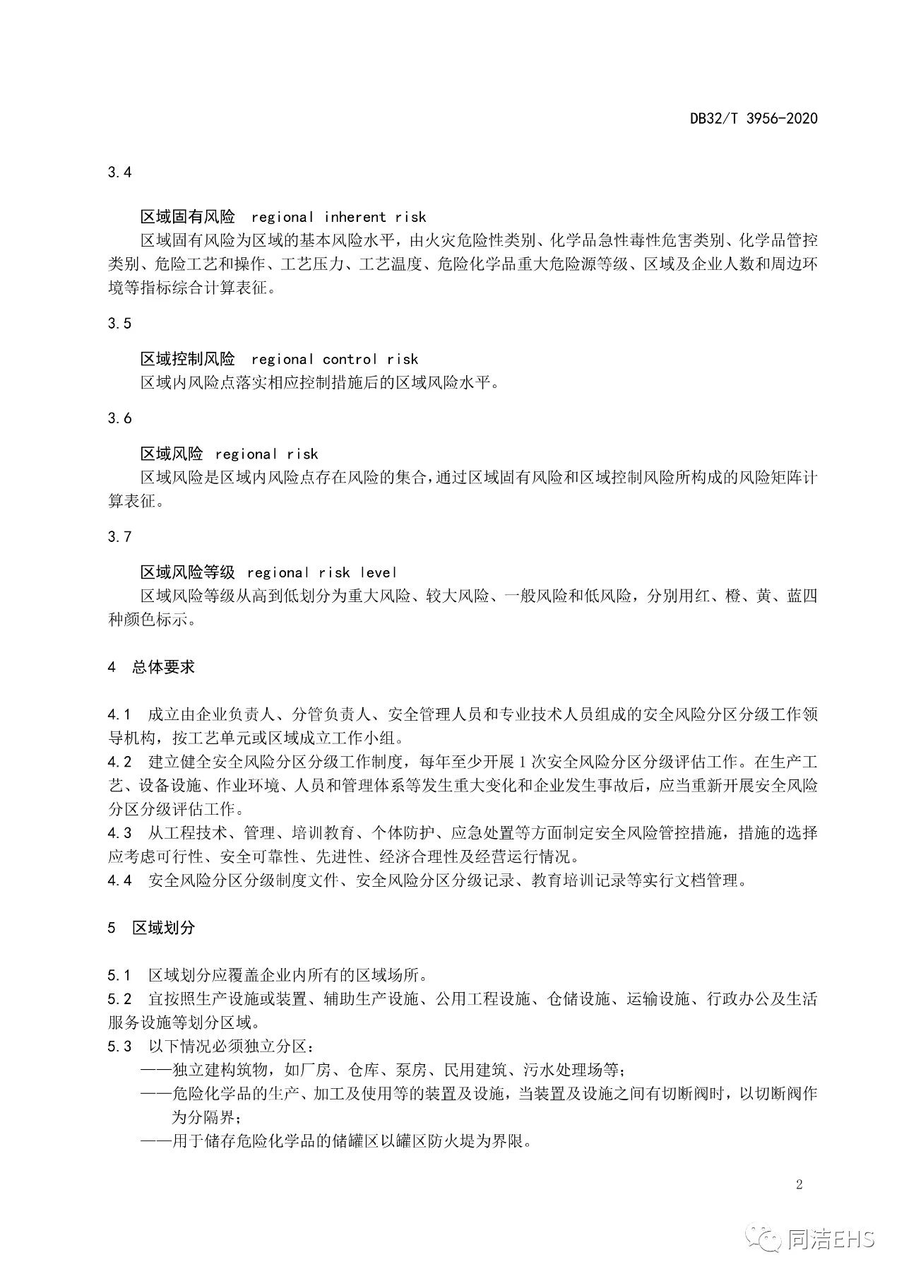 DB32T 3956-2020 化工企業(yè)安全風險分區(qū)分級規(guī)則(江蘇省標準),2020年1月15日起實施