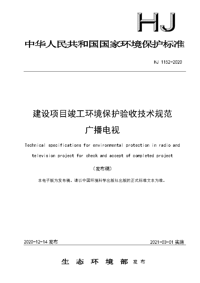 四、《建設(shè)項(xiàng)目竣工環(huán)境保護(hù)驗(yàn)收技術(shù)規(guī)范 廣播電視》(HJ 1152-2020)