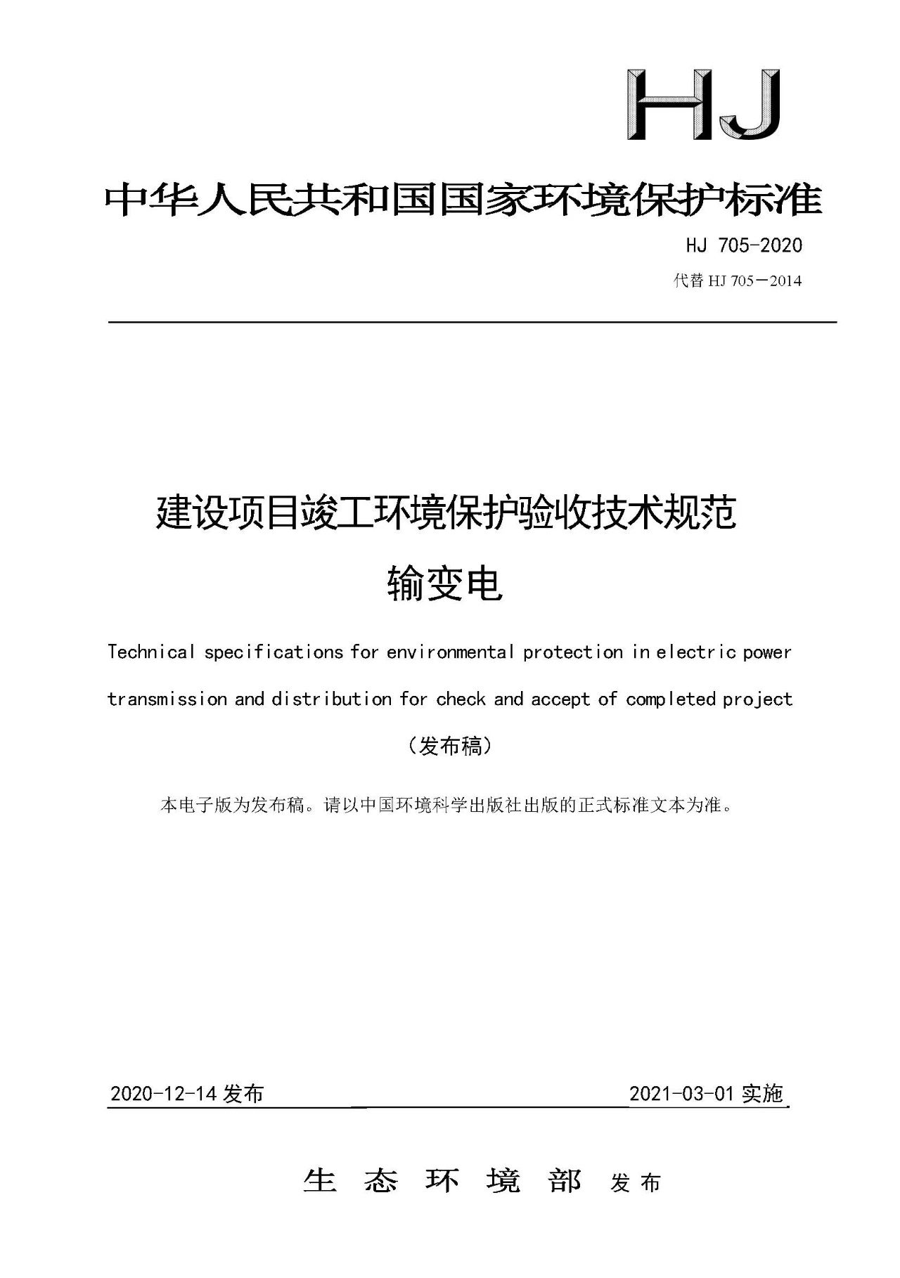自上述標(biāo)準(zhǔn)實(shí)施之日起,《環(huán)境影響評(píng)價(jià)技術(shù)導(dǎo)則 輸變電工程》(HJ 24-2014)、《建設(shè)項(xiàng)目竣工環(huán)境保護(hù)驗(yàn)收技術(shù)規(guī)范 輸變電工程》(HJ 705-2014)廢止。
