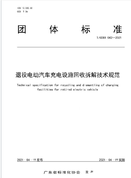 廣東省標協發(fā)布《退役電動汽車充電設施回收拆解技術規(guī)范》團標