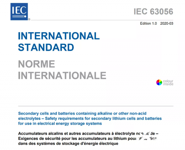據(jù)IEC官網(wǎng)消息,IEC 63056:2020 《Secondary cells and batteries containing alkaline or other non-acid electrolytes - Safety requirements for secondary lithium cells and batteries for use in electrical energy storage systems》于2020年3月27日正式發(fā)布。IEC 63056:2020由IEC/SC21A歸口,其下設(shè)的WG5工作組負責(zé)制定。