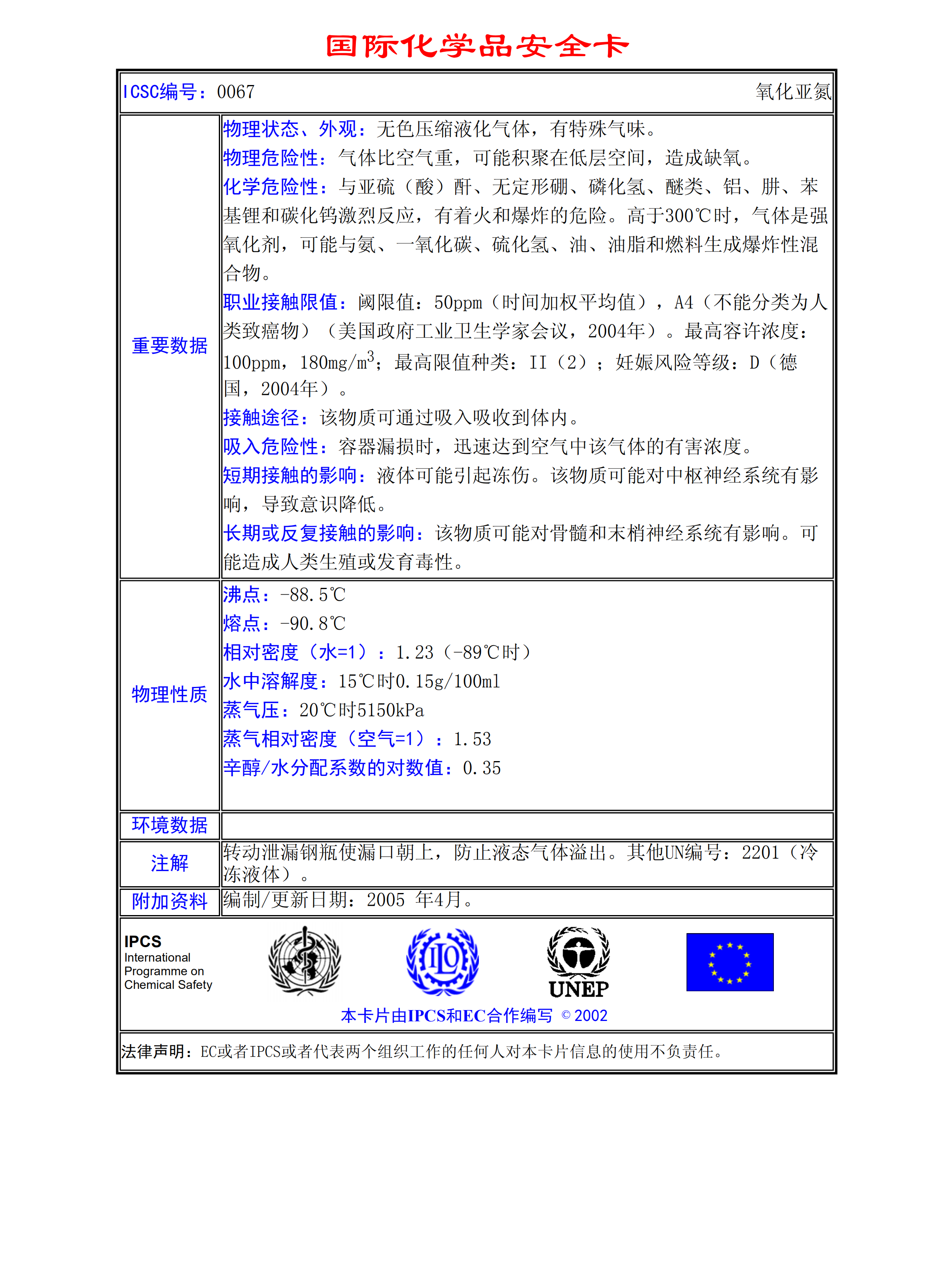 氧化亞氮MSDS