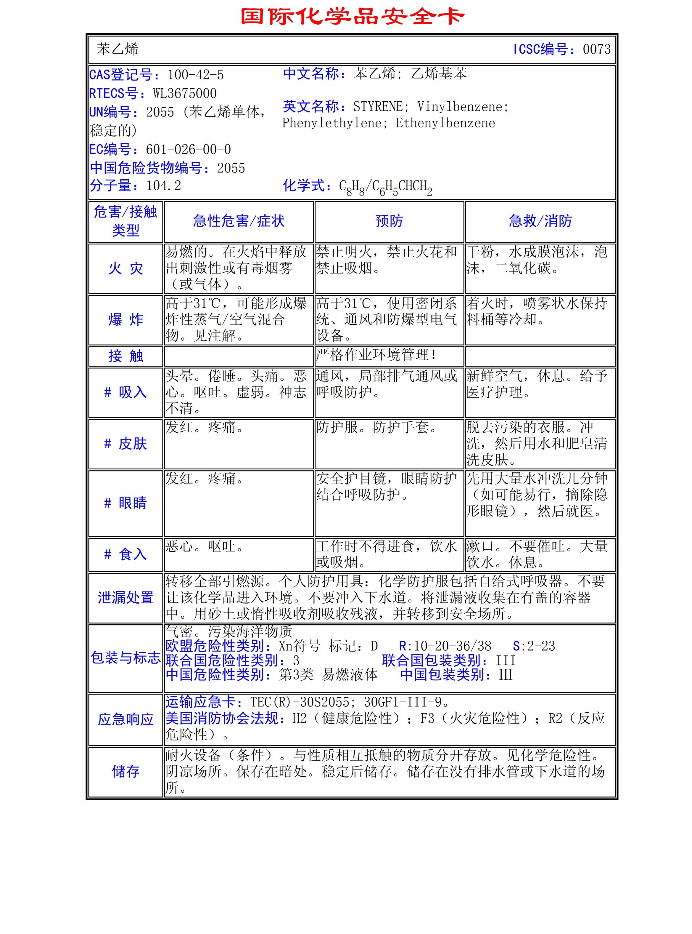苯乙烯MSDS