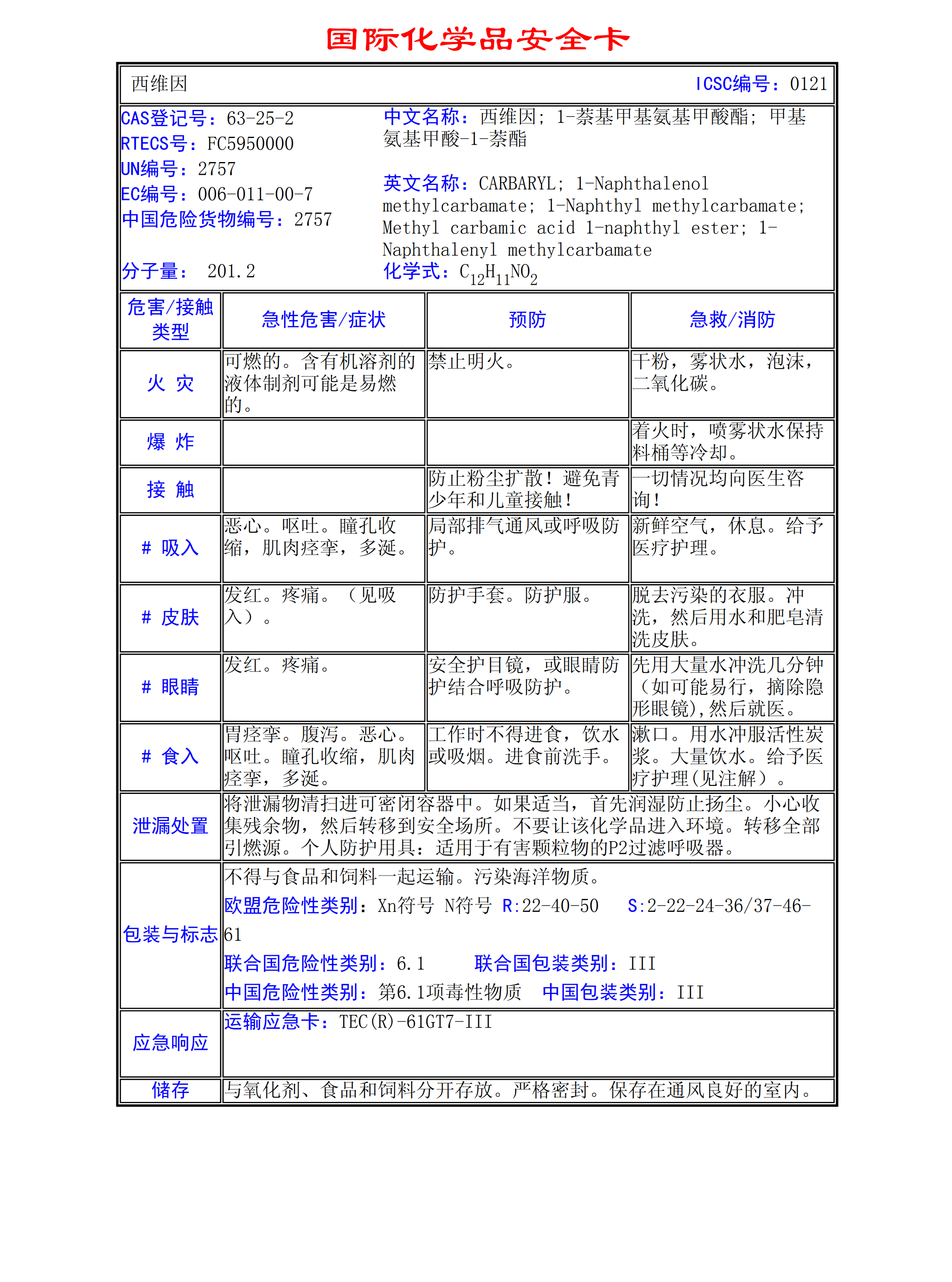 蟲螨威MSDS