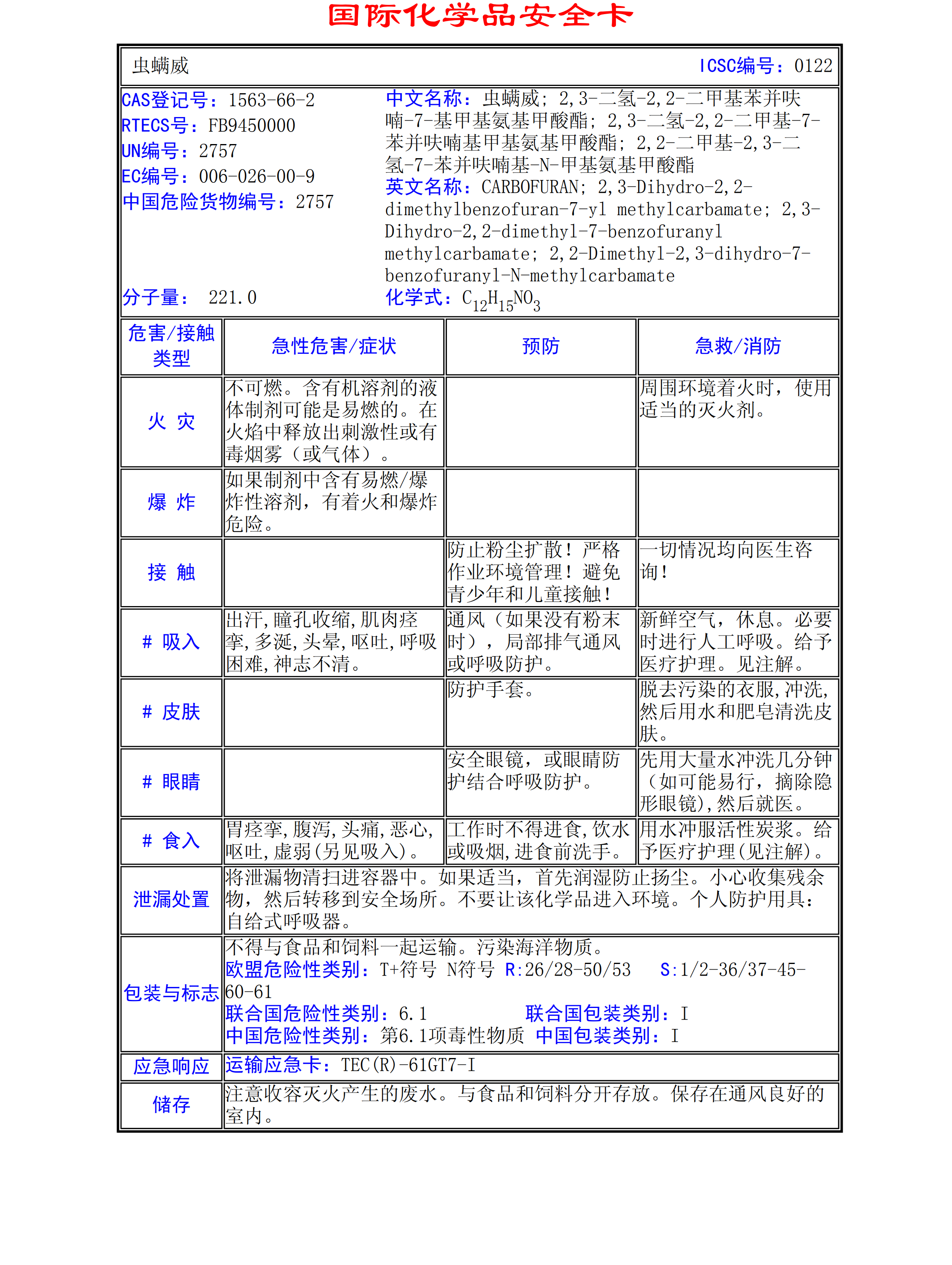 蟲螨威MSDS