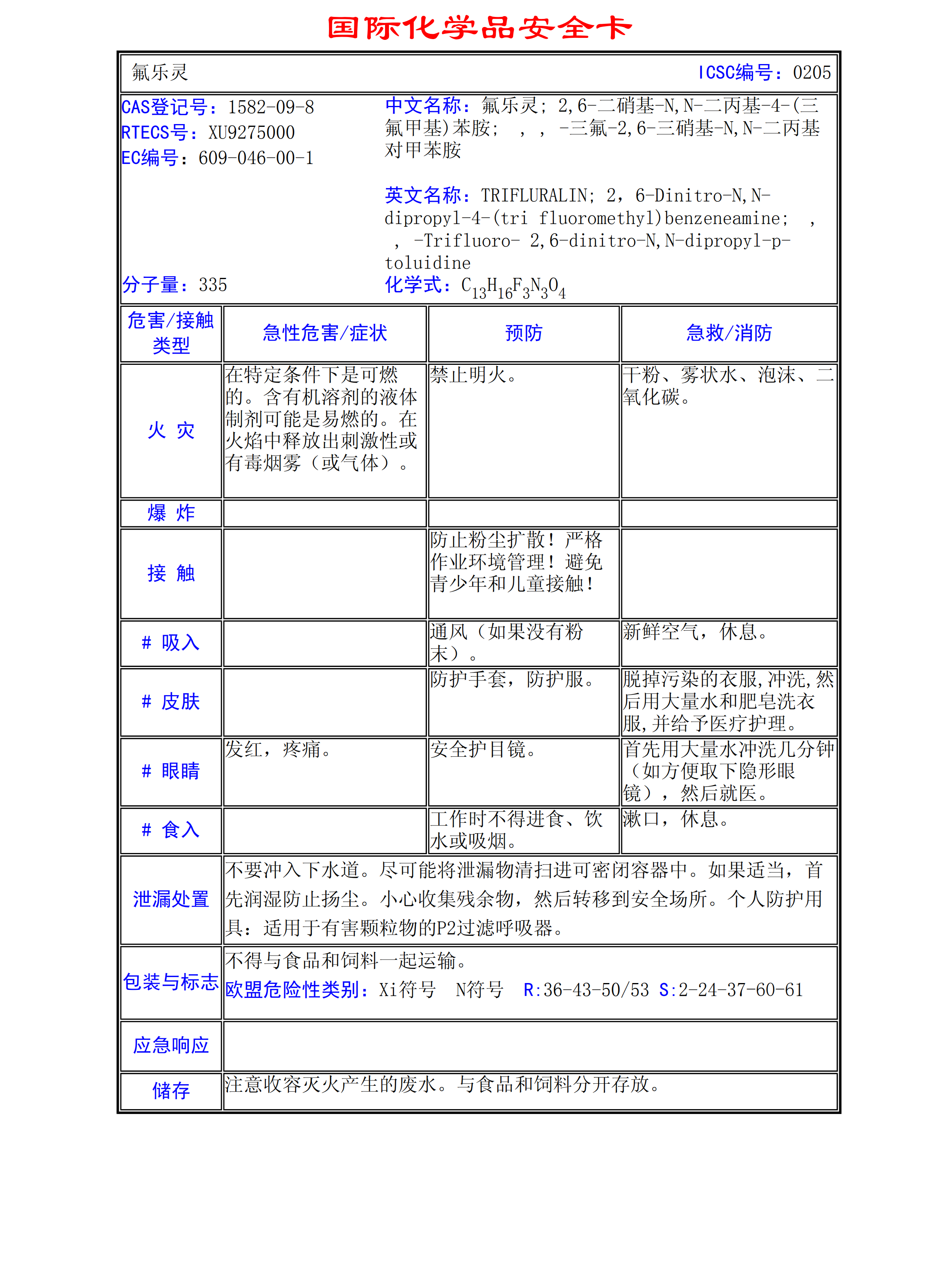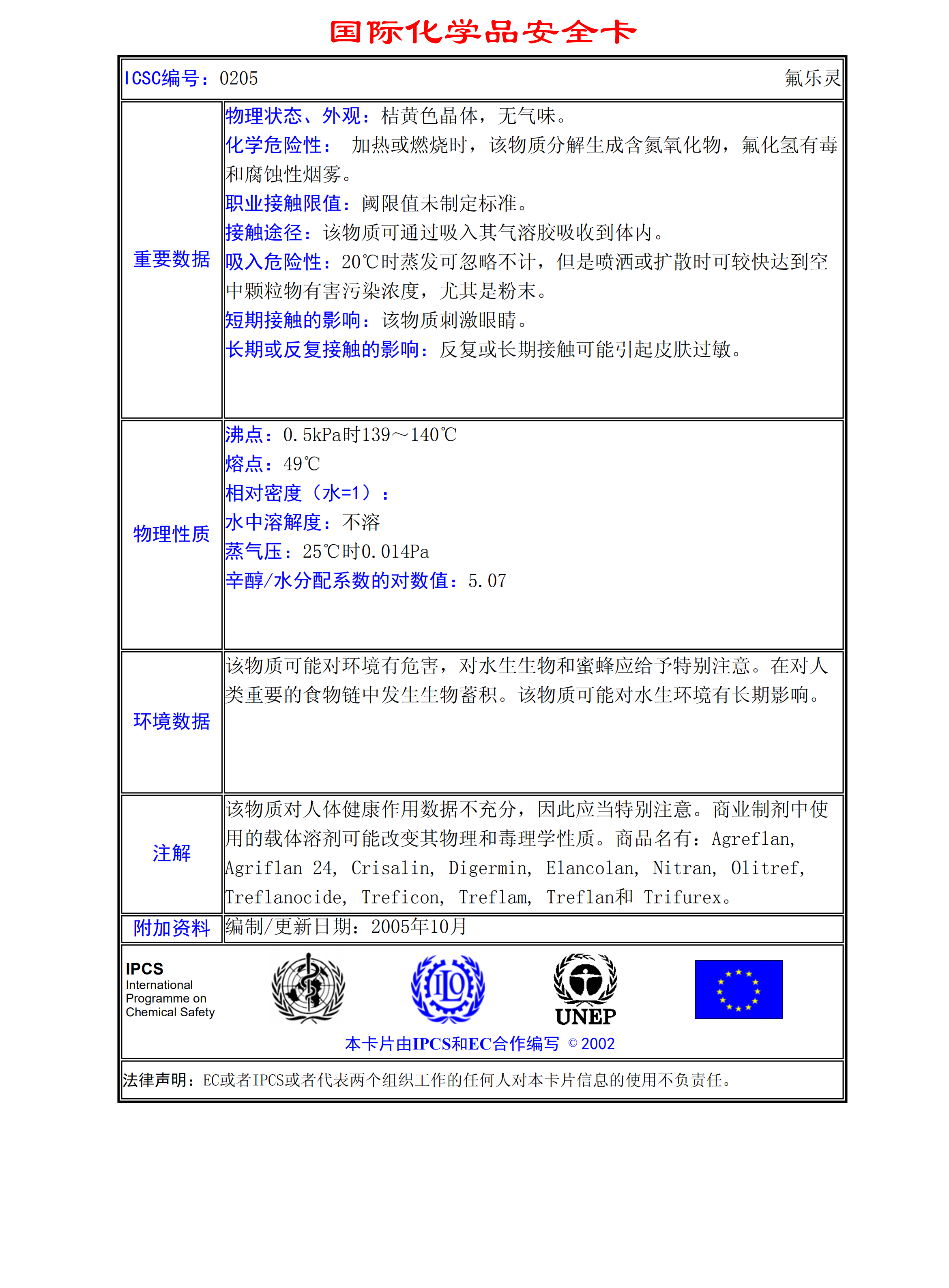 氟樂靈MSDS
