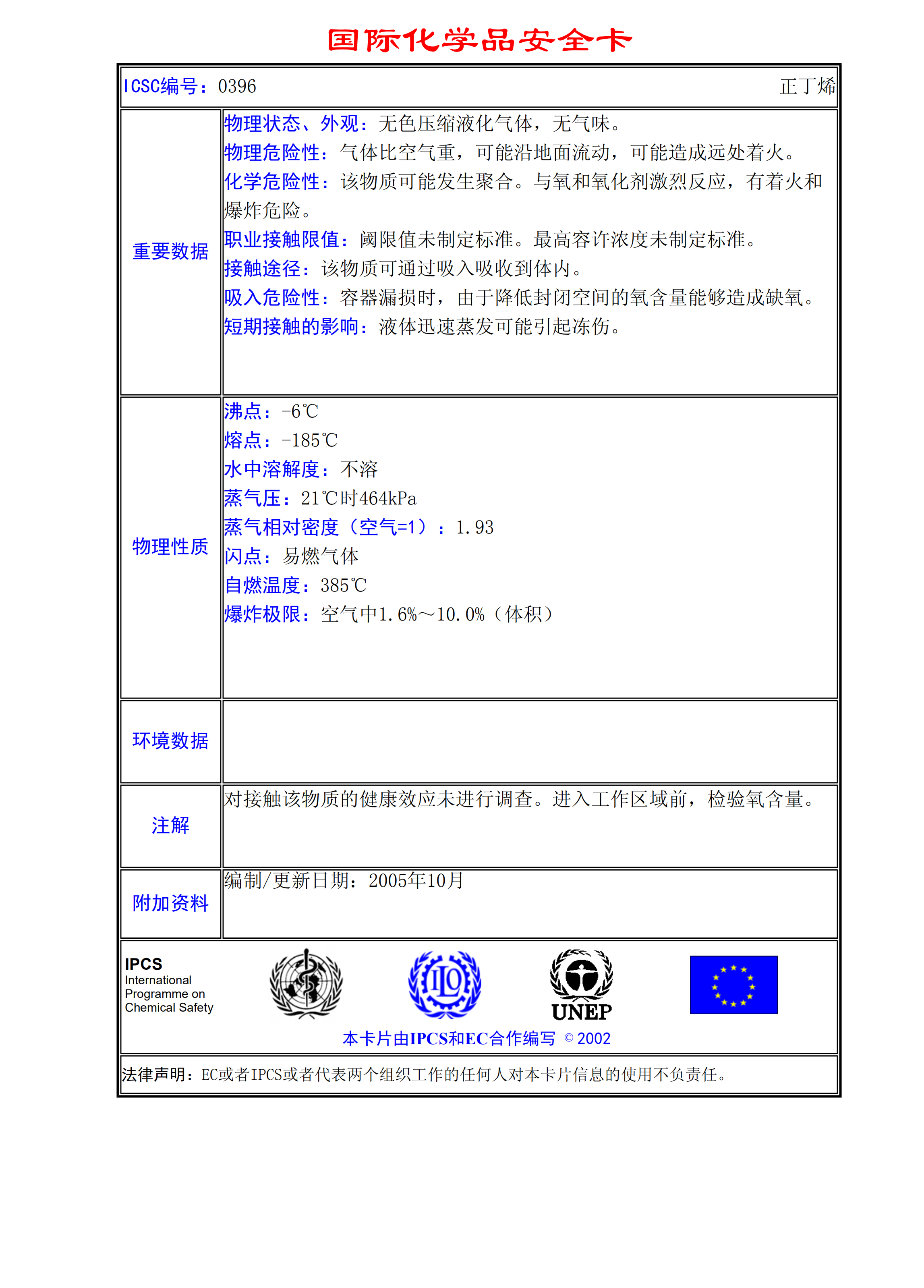 正丁烯MSDS