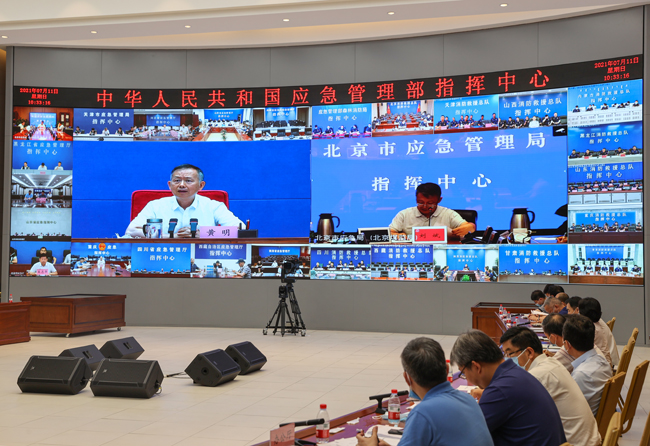 7月11日,國家防總副總指揮、應(yīng)急管理部部長黃明主持召開防汛專題視頻會商調(diào)度會議,與中國氣象局、水利部、自然資源部會商研判,視頻連線四川、陜西、河南、山西、河北、北京等地防指、消防救援總隊和森林消防總隊,會商部署當(dāng)前防汛和北方強降雨防范應(yīng)對工作。周學(xué)文、徐平、閔宜仁、瓊色等部領(lǐng)導(dǎo)參加會議。