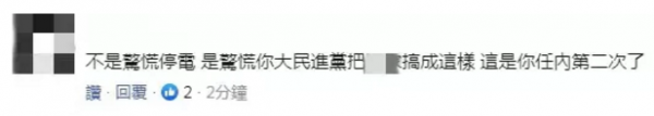 也有網(wǎng)友怒斥民進黨當局:不是驚慌停電,是驚慌你民進黨把臺灣搞成這樣,這是你任內(nèi)第二次了?!?/p>