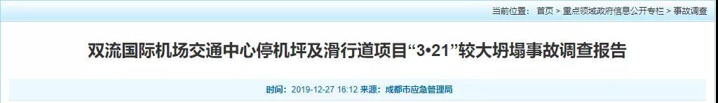 經(jīng)調查認定,雙流國際機場交通中心停機坪及滑行道項目“3·21”坍塌事故是一起生產安全責任事故,事故等級為較大事故。