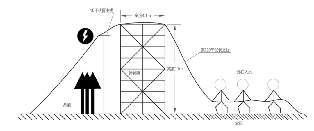 16時(shí)許,楊某某在6-7號(hào)桿塔間10千伏夏屯線北側(cè)剪斷南北走向的原 220 千伏長(zhǎng)文線架空導(dǎo)線后,使用繩子拴住第一、二股導(dǎo)線后在樹(shù)上高處進(jìn)行牽引,由王某某、李某某、倪某某3人拉拽到10千伏夏屯線跨越架南側(cè)地面。