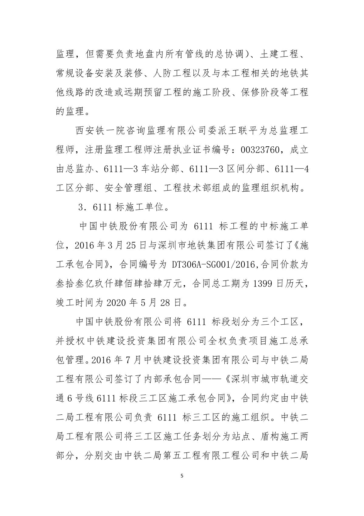 福田區(qū)人民政府關(guān)于深圳市城市軌道交通6號(hào)線二期主體工程6111標(biāo)“7.05”10kv電力電纜受損事故調(diào)查報(bào)告