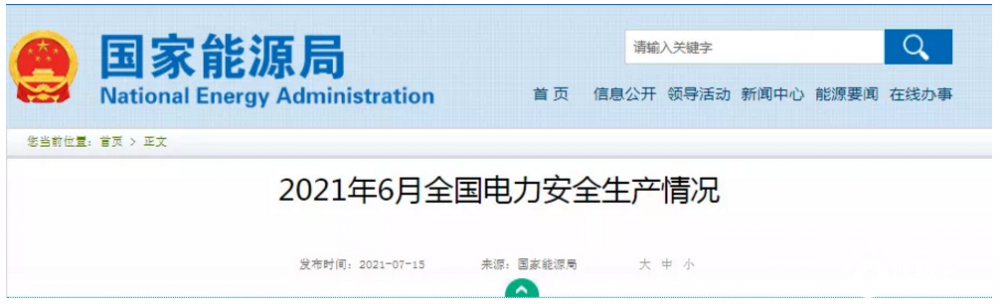 2021年6月份,全國發(fā)生電力人身傷亡事故2起、死亡2人,同比事故起數(shù)減少3起、死亡人數(shù)減少5人。其中,發(fā)生電力生產人身傷亡事故2起、死亡2人,同比事故起數(shù)減少2起、死亡人數(shù)減少4人;未發(fā)生電力建設人身傷亡事故,同比事故起數(shù)減少1起、死亡人數(shù)減少1人。未發(fā)生電力安全事故,同比持平。未發(fā)生直接經濟損失100萬元以上的電力設備事故,同比持平。發(fā)生2起電力安全事件,同比增加1起。
