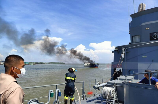 事發(fā)后,相關部門立即派消防船前往撲救,醫(yī)護人員已將傷者送往醫(yī)院。目前事發(fā)船只正漂向泰國灣入??诜较颍系幕饎菀褱p弱,尚不清楚造成爆炸的原因。據(jù)悉,該油輪隸屬ayudhya development leasing co。