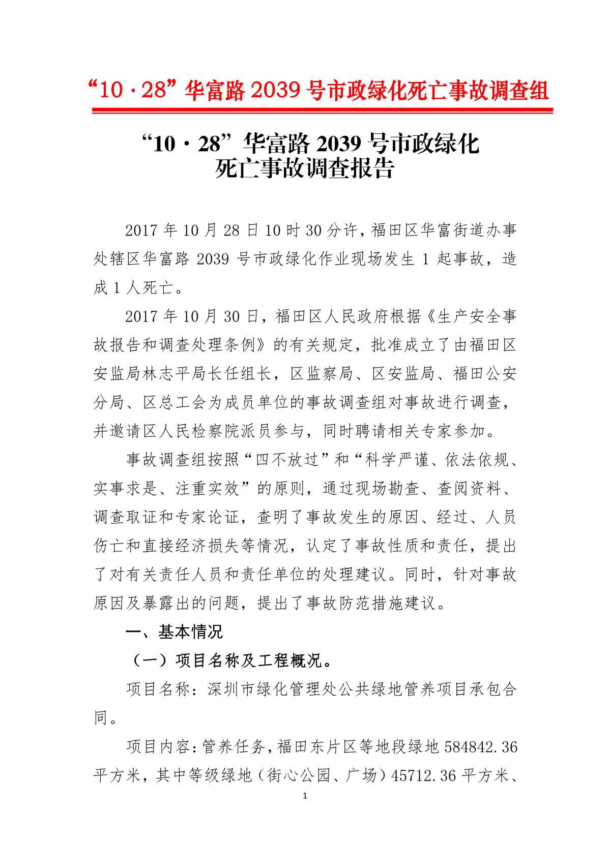 “10.28”華富路2039號(hào)市政綠化死亡事故調(diào)查報(bào)告