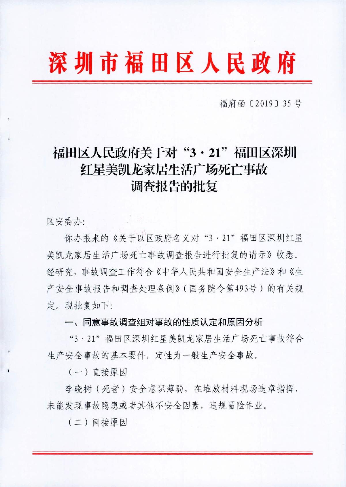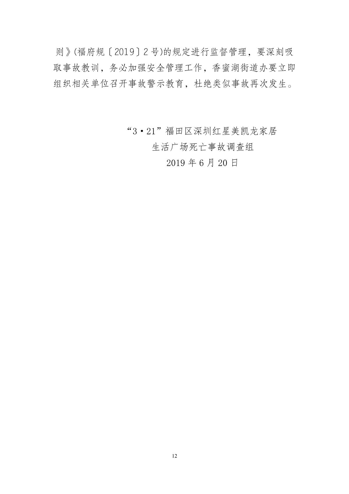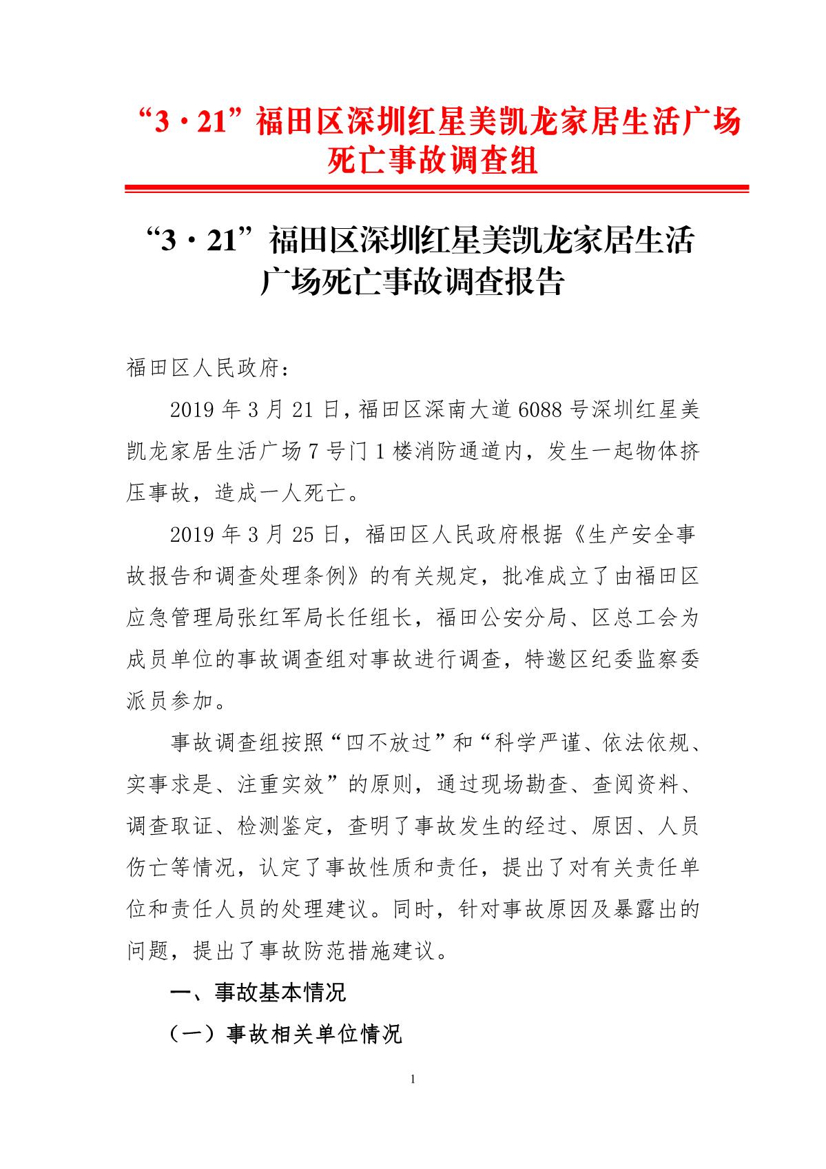“3.21”福田區(qū)深圳紅心美凱龍家居生活廣場死亡事故調查報告