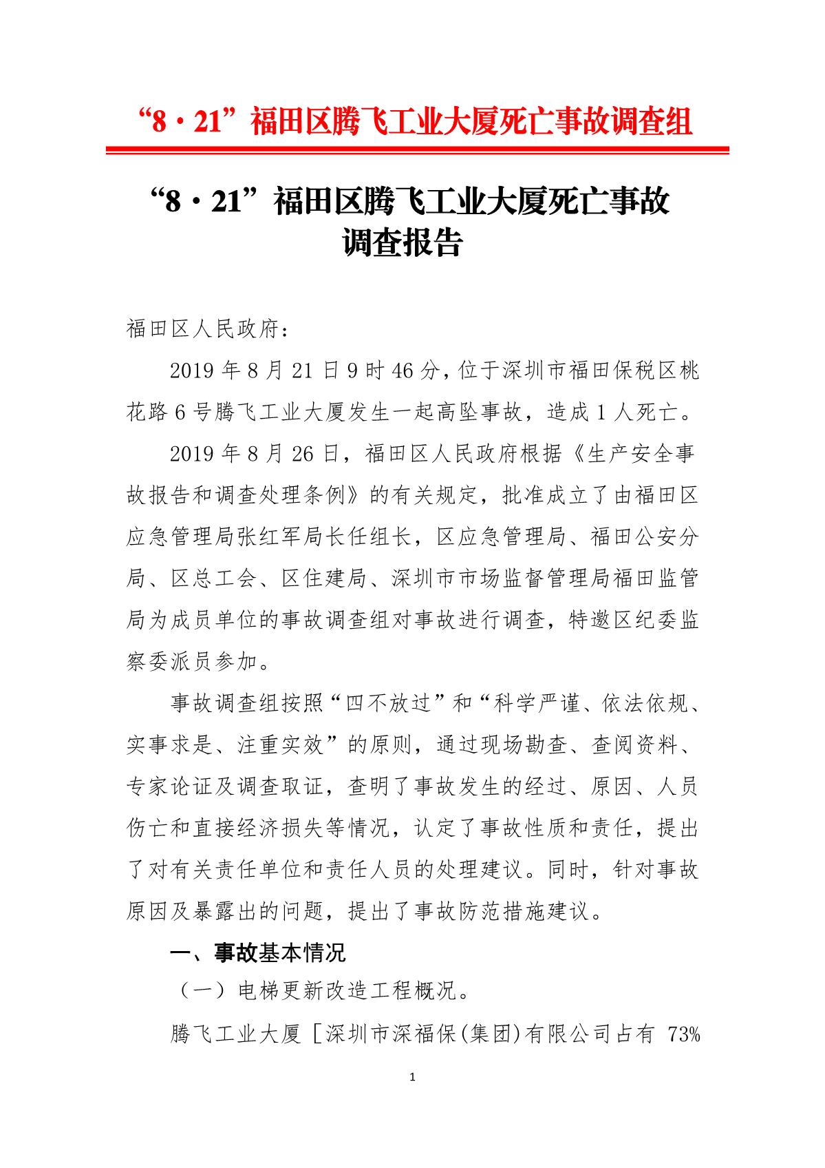 “8.21”福田區(qū)騰飛工業(yè)大廈死亡事故調(diào)查報告