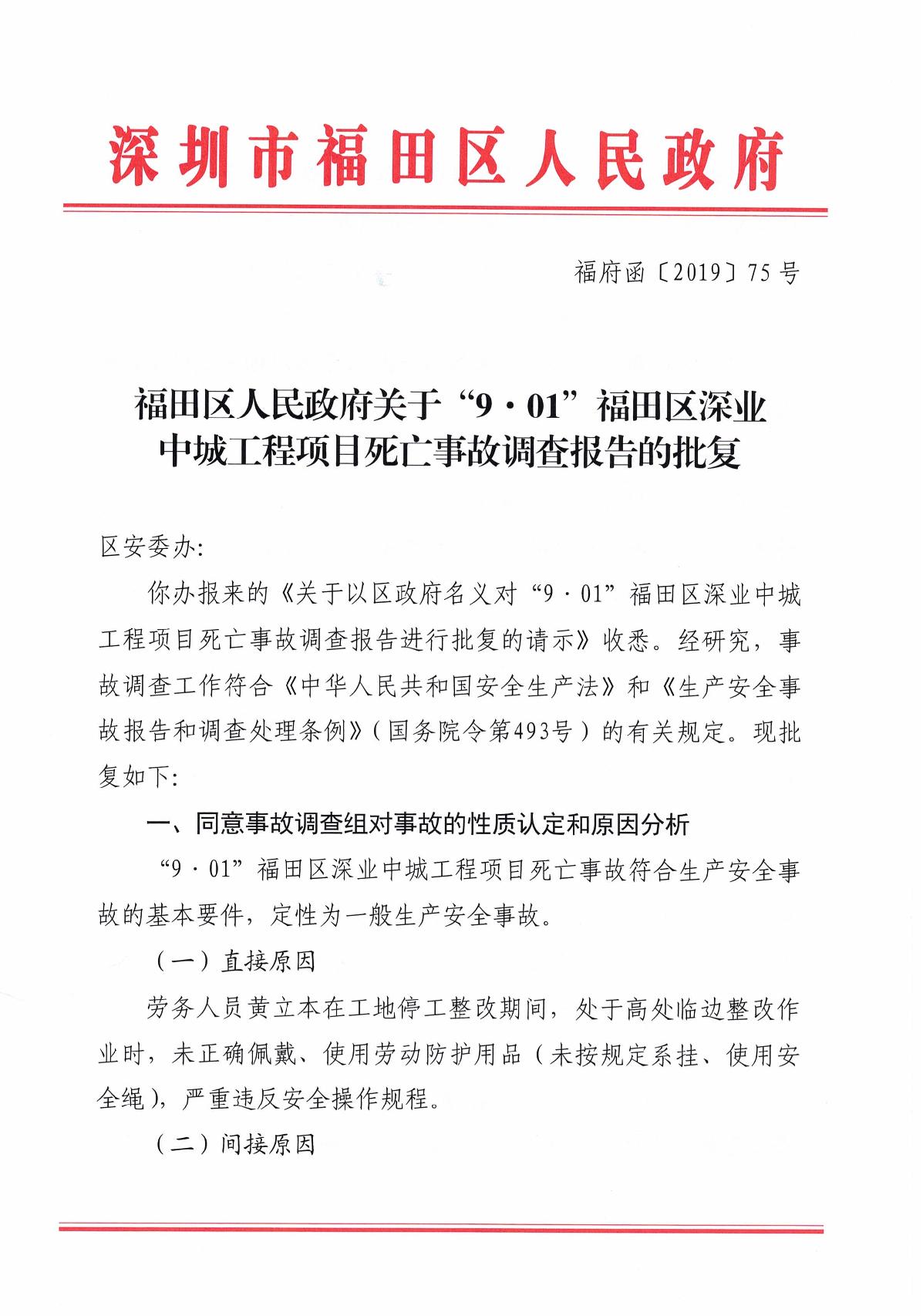 “9.01”福田區(qū)深業(yè)中城工程項(xiàng)目死亡事故調(diào)查報(bào)告