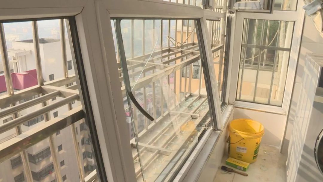這是贊皇縣翰林官邸小區(qū)11號(hào)樓前監(jiān)控視頻拍攝的畫面。從監(jiān)控上看,樓上住戶玻璃破損有大量碎玻璃掉落到樓下。記者了解到這些碎玻璃是從這棟樓21層一戶掉落下來(lái)的。之后,記者來(lái)到這家住戶屋內(nèi)。