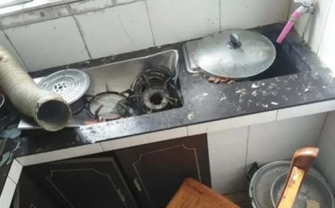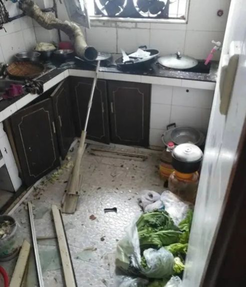 趕緊跑進廚房查看,發(fā)現(xiàn)灶上的高壓鍋發(fā)生爆炸。廚房里的灶臺、櫥柜、排煙管皆被震碎,現(xiàn)場一片狼藉,