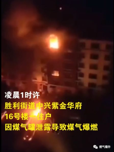 2019年9月4日0時(shí)53分,吉林樺甸市勝利街道中興紫金華府16號(hào)樓一住戶(hù)因煤氣罐泄漏導(dǎo)致煤氣爆燃,造成1人當(dāng)場(chǎng)死亡,無(wú)其他人員受傷。火災(zāi)于9月4日1時(shí)30分撲滅,經(jīng)查,房屋過(guò)火面積50平方米,損毀私家車(chē)2輛,煤氣爆燃具體原因相關(guān)部門(mén)正在進(jìn)一步調(diào)查中。