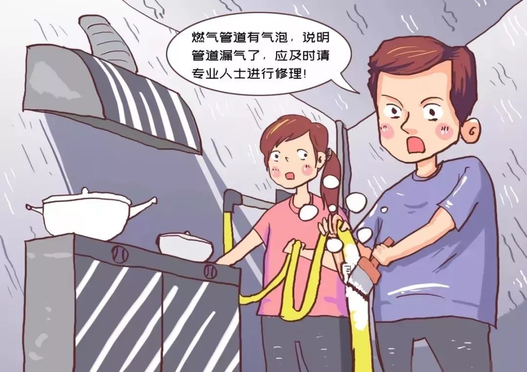 可用肥皂水,涂抹在膠管的連接處,如果有氣泡,說明燃氣正在泄漏。