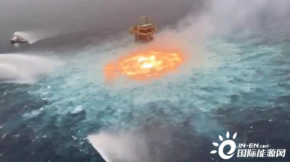 墨西哥國家石油公司海上輸油管發(fā)生氣體泄漏 海面燃起大火