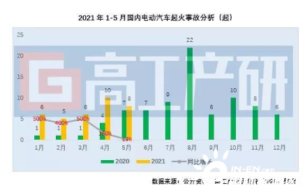 根據(jù)公告資料不完全統(tǒng)計(jì),2021年1-5月國內(nèi)共發(fā)生電動(dòng)汽車起火事故34起,較去年同期增加20起;涉及車輛數(shù)目38輛,較去年同期增長73%,隨著國內(nèi)電動(dòng)汽車保有量的快速增長,起火事故備受業(yè)內(nèi)關(guān)注。