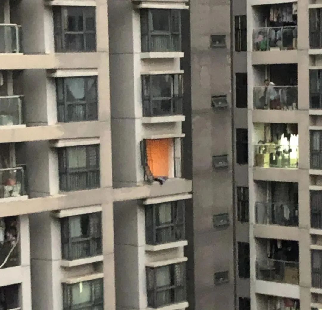 只見(jiàn)一個(gè)高層單元內(nèi)正往外冒著火光