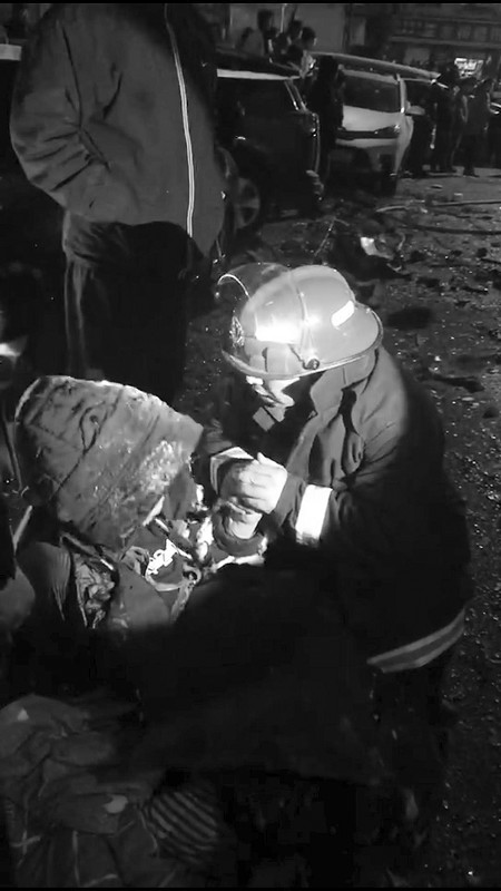 消防隊員從樓內(nèi)背出多名傷者。記者看到,部分傷者頭部流血?!巴ψ“?,一定要堅持住!”一名男子捂著一名男性傷者的頭部,在刺骨的寒風(fēng)中不住地鼓勵他。同時,有部分尚能自己行走的傷者在親人攙扶下被疏散到安全區(qū)域。