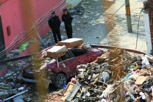 昨日,民*在爆炸現(xiàn)場進(jìn)行調(diào)查。