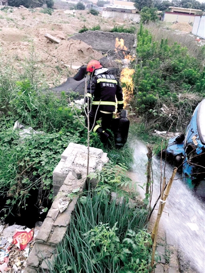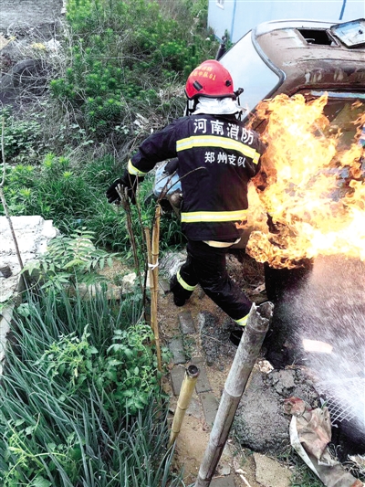 鄭州“抱火哥”火災中拖出燃燒煤氣罐