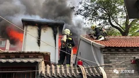 建國門三源胡同內(nèi)一民房起火,火勢明顯,消防人員正在現(xiàn)場處置。武警供圖