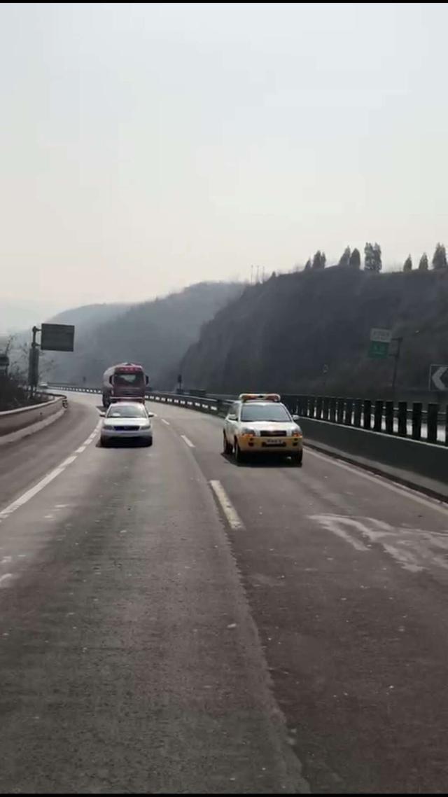因事發(fā)地為當(dāng)?shù)鼗睒滗伌宕迕窬幼∠鄬γ芗瘏^(qū)域,一旦有火點(diǎn)引發(fā)爆炸,后果不堪設(shè)想。經(jīng)現(xiàn)場民警、消防人員與該車駕駛員和押運(yùn)員商定后,決定采取由警車、路政巡邏車在前方帶道,該危化品車緊隨其后,消防車在尾部觀察警戒的方式,駛向距離晉冀交界6公里下高速且人員相對較少的開闊場地再進(jìn)行處置。