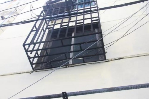雖然墻面已經(jīng)重新涂抹,但是2樓的窗戶和空調以及外墻的各種電線已經(jīng)烤焦了。